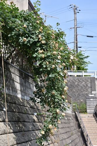 関西各地で観光地に出かける車が渋滞しているようです。 阪神高速神戸線~加古川バイパスの渋滞34㎞……とか。 こんな日は出歩くことをせず、ひたすら庭仕事というのが私の生活パターンです。 ツルばらが賑やかになってきました。 まずは2階のベランダから…